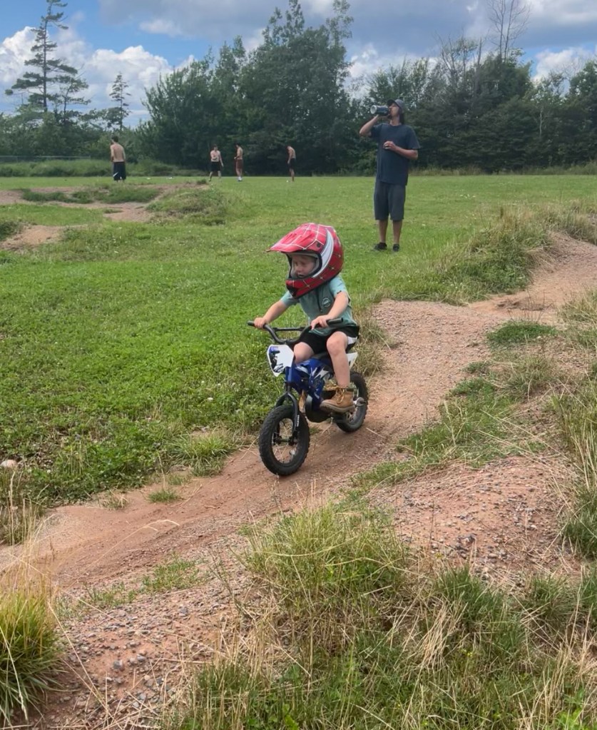 Our first day there my parents surprised us by taking us to a bike park but sadly when we got there it was all overgrown. My mom found another one near by so we went to check it out. When we got there we seen a small playground with lots of bike jumps and a whole track. We had a blast riding and I was so excited for Landon because he was doing so good and even went on some of the big jumps. After having the time of our life at the bike park we went to Costco. Landon and I love going to Costco because we get all the free samples. Then we headed home and I made a rope swing over the lake before heading to bed.