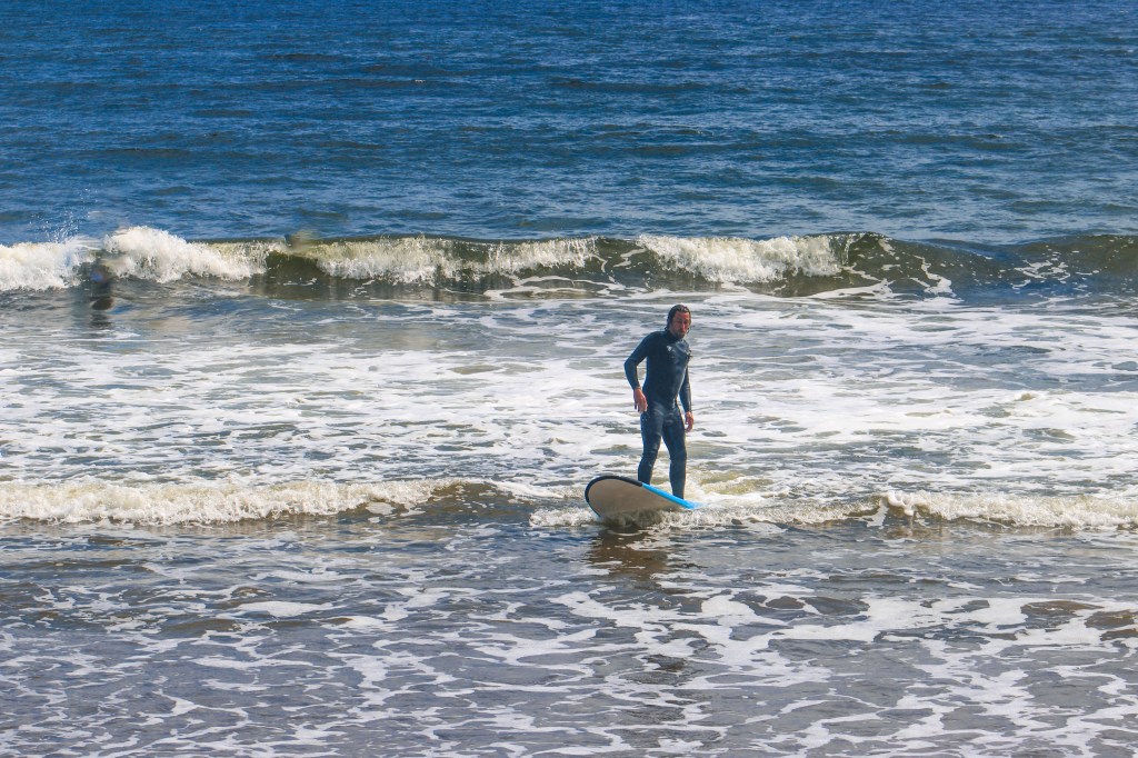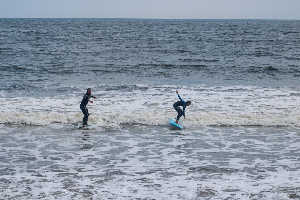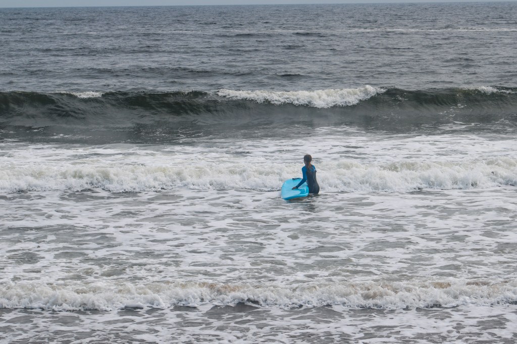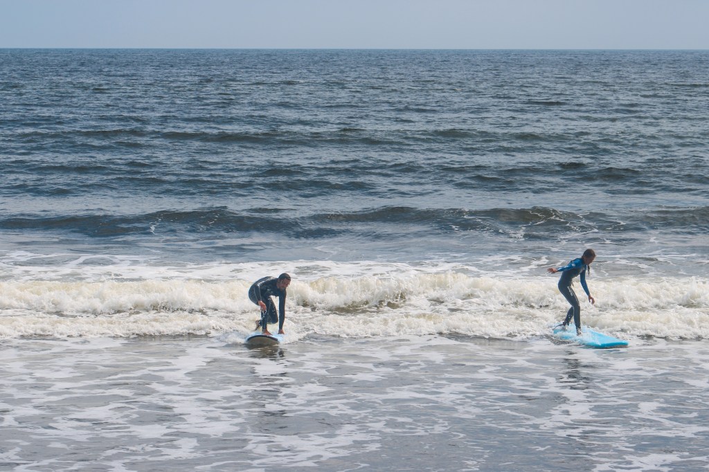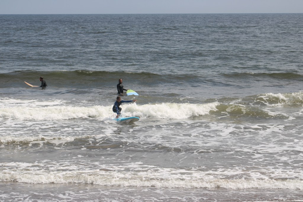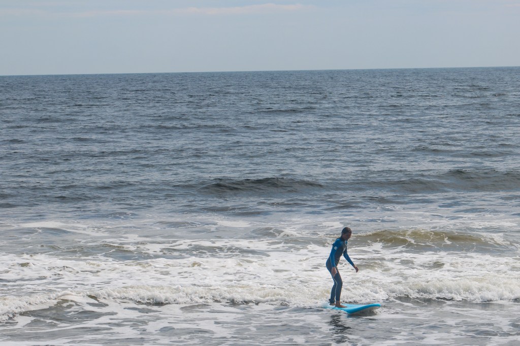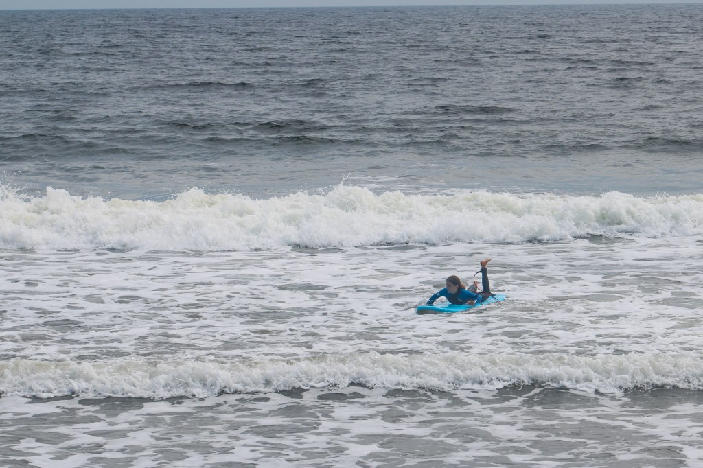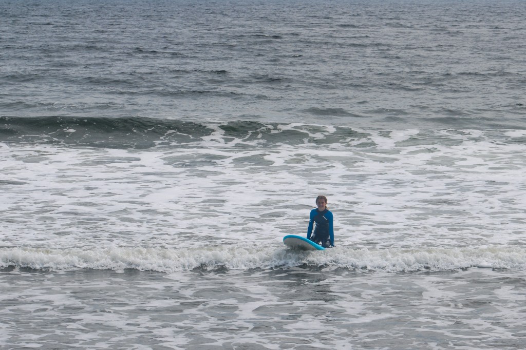 The following morning, I woke up early to my mom making coffee. I was so excited because I was going surfing! We all hurried to get out the door because I had to be to my lesson by 9:45. After making it to the beach we checked in, got our surf boards and headed down to the water where our instructor taught us how to catch a wave and other important tips we needed to know. It was really hard and I ate it a bunch but after a little while I got the hang of it. My dad and I had a blast surfing and caught a ton of good waves, but after surfing for 8 hours straight we had to return our boards and head back home to get ready for another drive day the following morning.