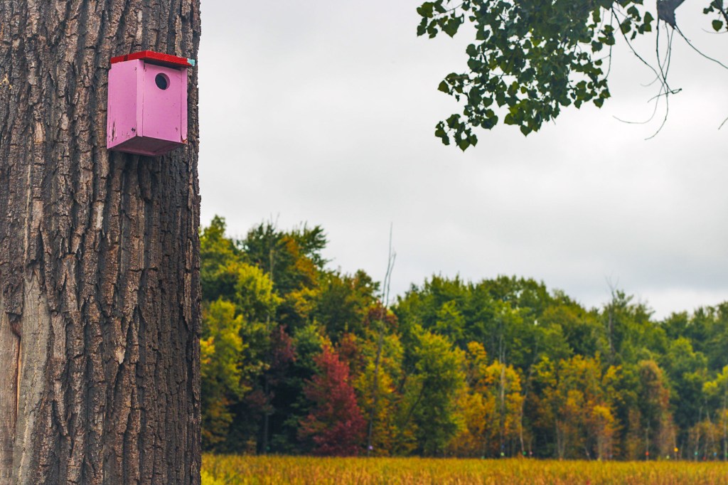 Our last day there we went to a fun little park along the lake to explore South Hero Birdhouses. It started 25 years ago where the land owners read if you put bird houses up by the swamp the birds will call it home and eat the mosquitos. It started with just a few but now there is about 1000 birdhouses. The Tree Swallows return to the same breeding area year after year and their mosquito problem is less and less.