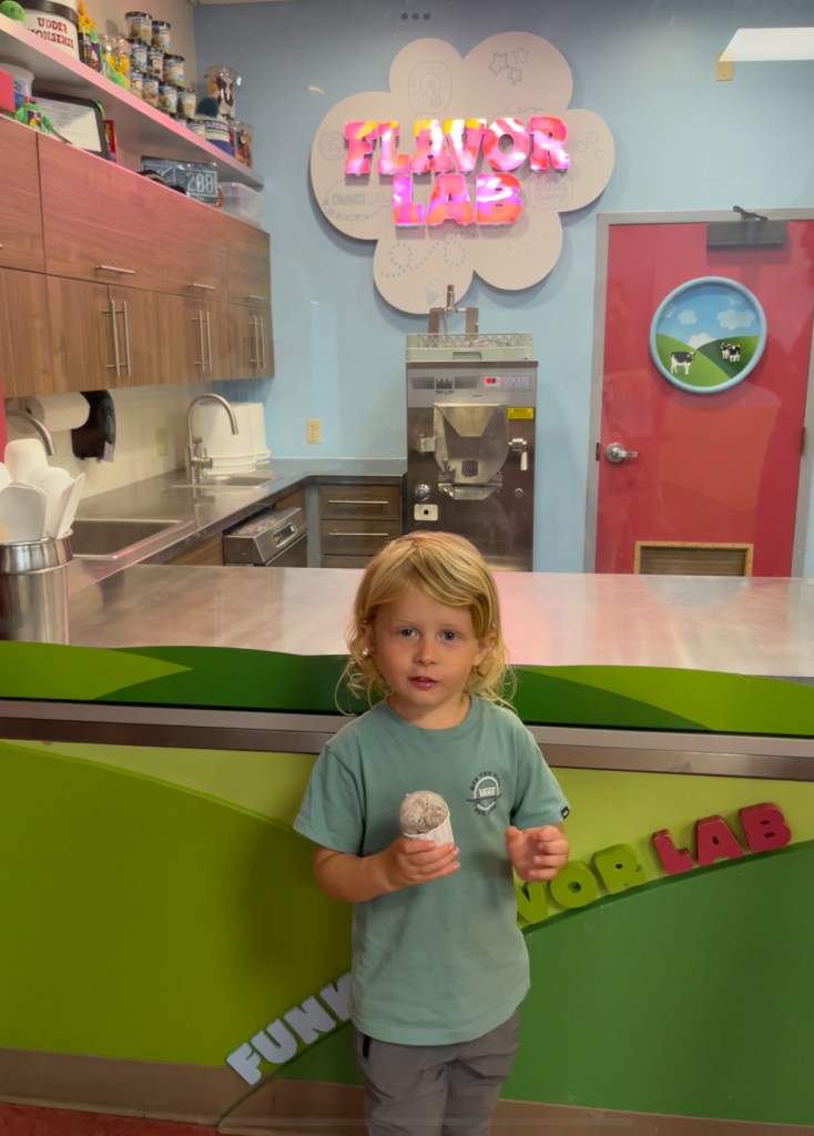 The next day was a drive day to New Hampshire but on our way we stopped at Ben & Jerry’s Ice Cream Factory to learn about the history and get some yummy ice cream. During the tour we watched a short video and had a few quiz questions after. I answered every one correctly, so the guide asked me to be her helper to hand out cookie dough samples and after I was done she gave me all the left overs. After the tour we got to eat the best ice cream, Dirt cake. We explored the ice cream grave yard where all the flavors that didn’t make it rest and played on the playground before getting back on the road.