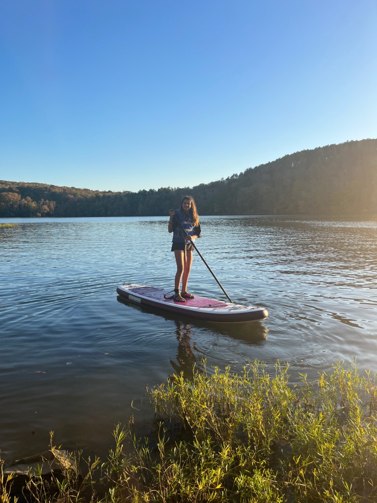 Since we were right by the river we spent the whole day by the water so I could try out my new paddle board. Landon and my dad fished while my mom helped me work on school. Once I was done with school we blew up the paddle board and I finally got to try it out. We all took turns on the paddle board and were so happy with our decision to get it because it was much easier to use than our kayaks. Once the sun was setting we went back to the RV to have dinner and watch the Chosen together.