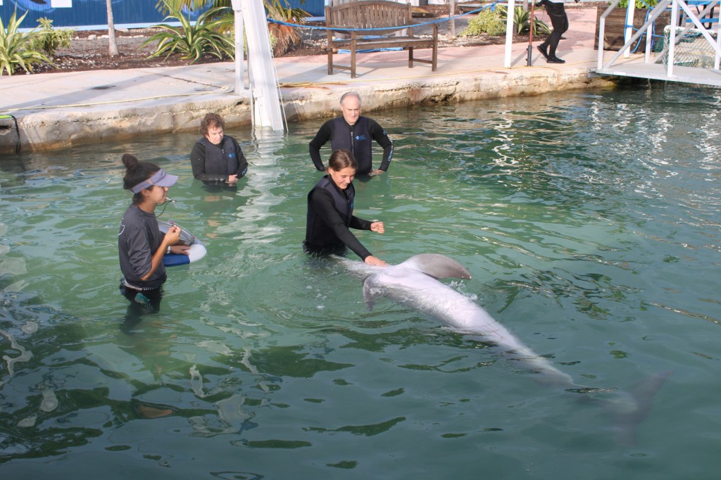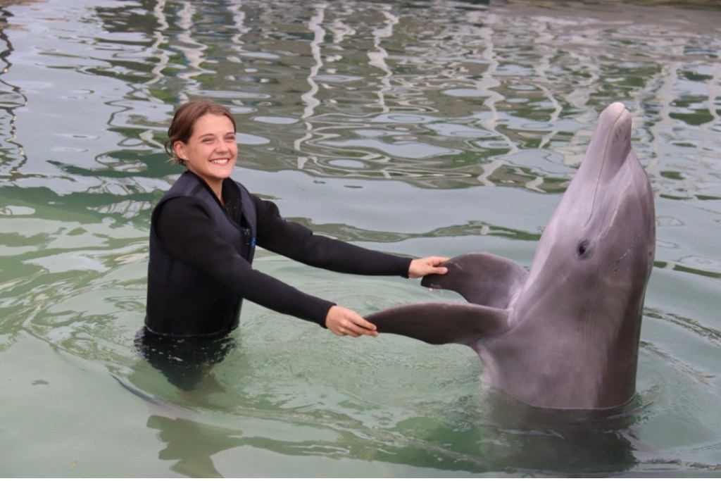 When we first got to the dolphin rescue I got all checked in then went to the pools to watch the dolphins do tricks. After a bit they called us over for an educational briefing prior to going in the water. Once we were situated on the platform they lowered it to about waist deep, the water was super cold at first but I got used to it quickly. First, we stood at the edge of the platform and reached our hand out so we could pet it and get used to each other. I thought it was going to feel like sandpaper but they were actually so soft, like baby skin. We took turns swimming off the platform, putting your arms out and when the dolphin swims under you, you grab on to its flippers for a ride back. It was so cool being belly to belly with such a miraculous creature. To end our time with the dolphins, the instructor announced there was a special birthday and I knew she was talking about me. She asked me to once again come to the edge of the platform and wave my hands as if I was conducting an orchestra. The dolphins came up and spun in circles and sang along while everyone sang happy birthday. Lastly, the instructor told the dolphin to get me a present, so it dove to the bottom and brought me back some sea grass as a gift. It was such an amazing experience I will remember forever.