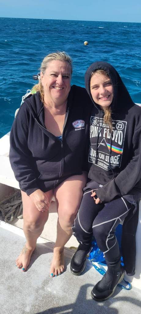 I woke up early super excited because today I get to go scuba diving with my grandma for my first dive as an official scuba diver. Our hotel shared a parking lot with Rainbow Reef so we were able to just walk over to get our gear and hop on the boat. Once on the water it was about a 30 min ride out to the open water, so we had plenty of time to set up our gear and prepare before getting in. We dove down to a ship wreck, i got to see a cute sea turtle and tons of colorful fish. We also seen a coral and sea plants that were absolutely fascinating, even with the visibility being poor due to all the recent storms. Even though it was poor diving conditions, it was still amazing to have the opportunity and bonding time with my grandma.