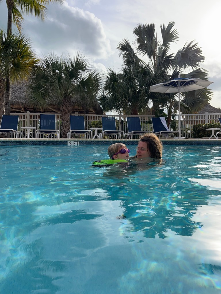 The following morning we ate some breakfast before heading down to the pool. It was the perfect sunny day so we spent most of it there. Landon’s swim instructor came and did another private lesson and by the end of the day he was swimming like a fish! Speaking of fish, we went to Sharkey’s for some delicious food and drinks. Since we’re on vacation my parents got us virgin pina colada’s, they were so yummy! We decided to get to bed early because grandma and I had a big day ahead of us.