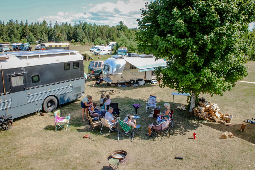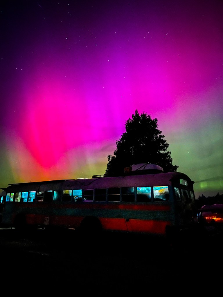 We FINALLY made it to Skoolie UP! We’re so happy to be at this amazing event! Our spot was right in the middle of lots of our friends and central to all the action. The event was held at a campground so they had all the amenities plus a restaurant/bar, pond, disc golf and more. When we arrived I went straight over to all my friends, we went for a walk and they showed me around. Then we all went over to play volleyball, soon enough the boys started fighting and wrestling over the ball so we ended the game. Since it was a warm day we decided to jump fully clothed into the pond to cool off. We ended the evening with a community bonfire, s’mores bar and fire show.