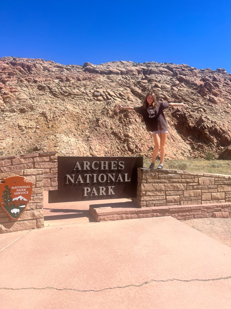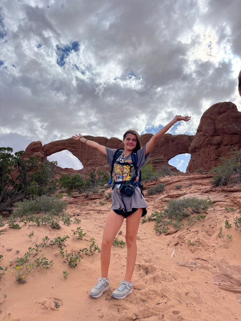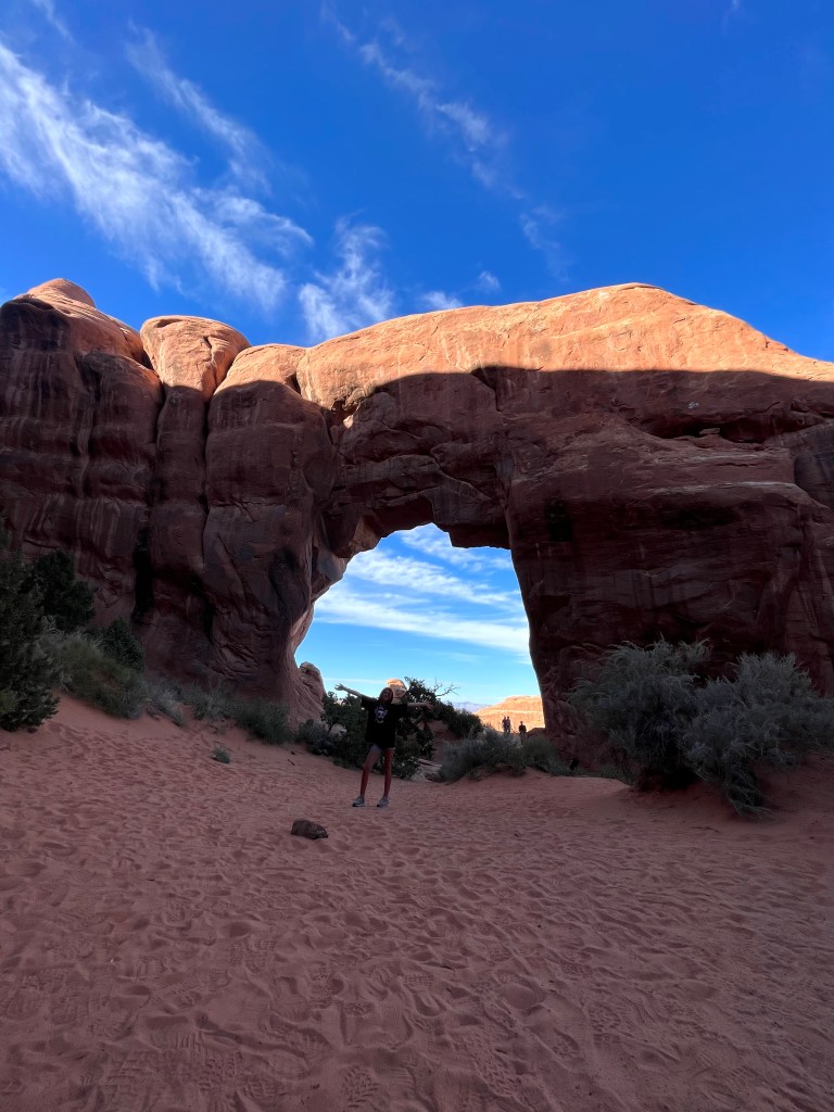 The following day we had another park day. Our first stop was a really short hike through a huge canyon with soft sand. While we were at the arch, a large group of children came as they were on a field trip. Since it got crowded we decided to have a quick look and head to our next hike. The next hike was a longer hike and you guessed it, it was to ANOTHER arch! Along the long hike we got to see many mini arches and an amazing overlook of the stunning mountains and gorgeous cacti. When we finally made it to the arch we took some photos and had a little break before heading home for dinner.