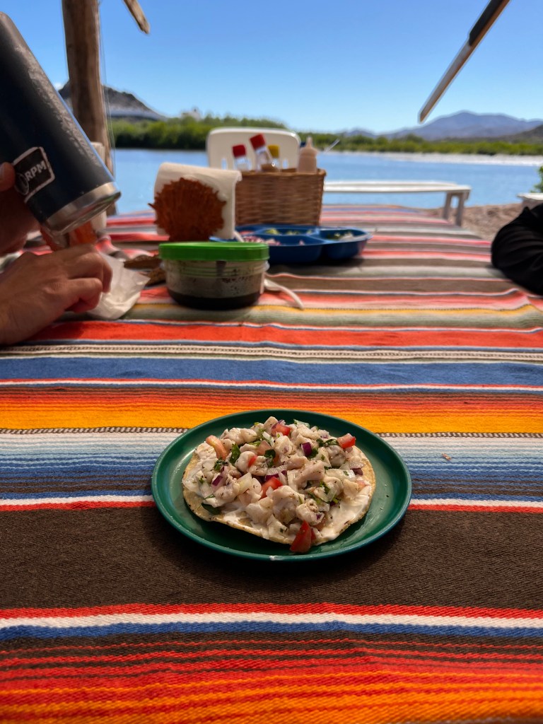 We’re camped on a free beach a few minutes outside of town where we stayed for just under two weeks (10/30/24-11/10/24). Our spot is super nice right on the ocean and walking distance to a restaurant as well as a fish taco stand. There is free palapas you can park at as well as a fishermen pier and boat ramp. The ocean meets the river on the other side of the pier so we were basically parked with one side facing the ocean and the other with views of the river, stunning! The only down fall of this site was the tight roads as you have to drive through the whole town to get back to the beach.