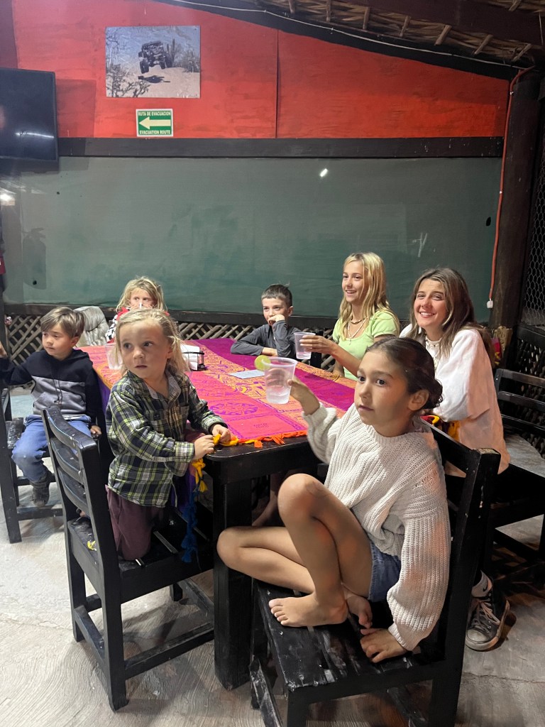 Abby and I got ready, packed snacks, water and took the kayak over to the hot springs and she told me about a hidden slide we could go to. When we arrived we soaked in the hot springs and this time we were actually there at the correct tide time so we were able to enjoy them. Then we walked over to the slide, to my surprise it was very steep and questionable… you know typical Mexico. It was hilarious because we couldn’t really tell how deep the water was but when we slid down we were shocked that it was super shallow and we hit our butts on the bottom. We did the slide a few more times before deciding we should probably start making our way back. The wind had picked up and was starting to intensify so we knew we wouldn’t be able to make it all the way back in these conditions. Thankfully there was a nice elderly lady near by that allowed us to use her phone to call our parents but no one was answering. We tried multiples times to each of our parents and sent a text but didn’t get any response. After about 10 minutes we decided to walk back down to the kayak to reevaluate the situation. When we got to the kayak there was a couple in a dingy that asked if one of us were Leila. I responded yes and they informed my parents Scott and Lauren had sent them over to check on us. We were a little nervous but accepted their offer to tow us back as we knew it was too rough to attempt on our own. When we made it back to camp our parents were all waiting and told us it was a great life lesson to not go out alone especially if you don’t know what the weather is going to be like.