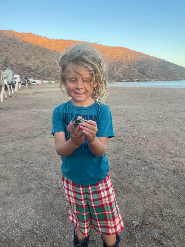 Hello everyone, we are at Playa Santispac again! But before we arrived here we had an overnight in Ciudad Constitucion to break up the long drive. We stayed at a truck stop for convenience as they have showers, laundry and we can get gas all in one spot. To our surprise when we arrived back to Santispac it was packed. We seen a small opening right next to another rig that had toys out so we knew they had kids. We asked them if they would mind if we squeezed in next to them and of course they said we could. After getting set up we met the family next to us and before we knew it, it was dinner time. Neither of us were ready to call it a night so we ended up doing a collab dinner and continuing to enjoy each other’s company.