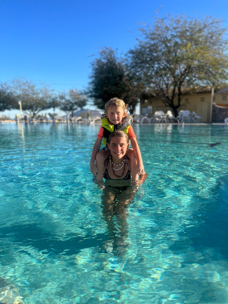 Hello everyone! We’re spending five nights at a campground/gated community in San Felipe. The place offers several amenities such as showers, bathrooms, a dog park, multiple pools, hot tubs, full hook ups, and some picnic tables.