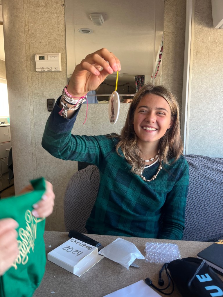 The following day was CHRISTMAS EVE! We started the morning off with coffee and a present. Me and Landon both got an ornament that represents a fun thing we did or liked that year. We started that tradition about three years ago. My mom thought it would be cool to get us ornaments each year so when we’re older, we have special ones and can tell our kids about it and what it represents. After getting ready for the day, we headed into town to get some last minute groceries. While we were in town, we stopped and got some birria tacos, which are my favorite, I highly recommend! When we got back from town, we put our groceries away, then went down to the pool. After a couple of hours at the pool, we went back into town to get some Chinese food. Eating Chinese food on Christmas Eve is a tradition to us, lol.