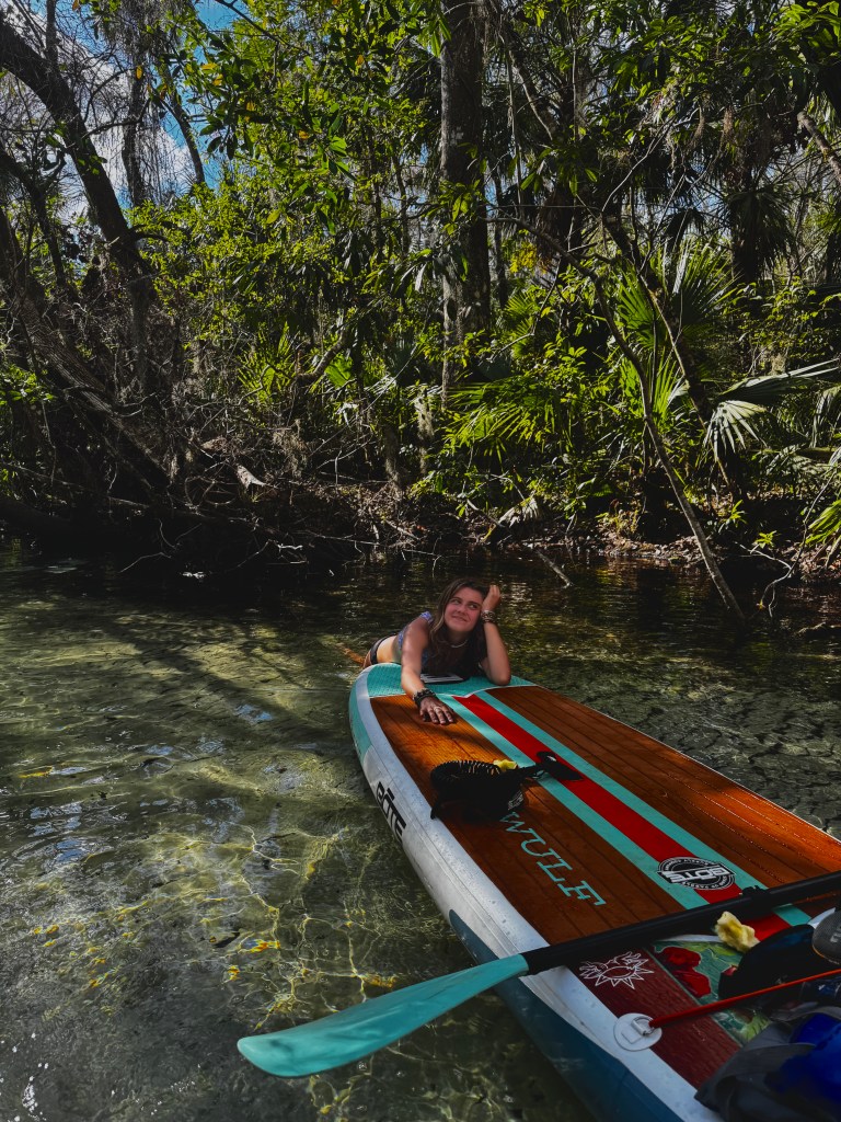 The following morning we got up early to go paddle boarding at Rainbow Springs. This time it was just us and our family. When we got there, we pumped up the paddle boards, packed snacks and drinks before setting off into the springs. We paddled around for a while and even found a spot that looked like the Bahamas, lol. After exploring the bigger spring, we went through the trees and explored a smaller spring. It was super pretty as it was so green and the water was so blue but crystal clear at the same time! We had fun swimming, listening to music, and exploring the springs. After a couple hours we had to make our way back, which was hard as the current was not on our side. When we finally made it out of the springs, we headed home.