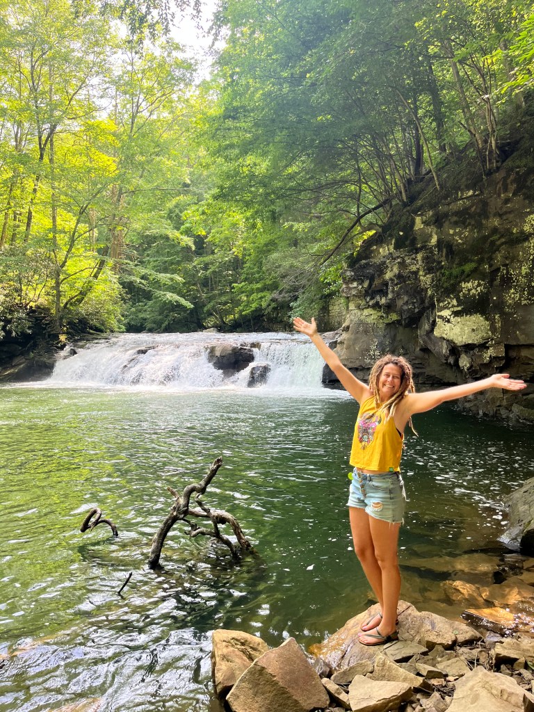 The next two days we went on waterfall hikes. The first one was 1.5 miles there and back through all the green trees, right along the river, and all in the shade, basically a perfect hike. After walking for a little while, we made it to the waterfall, and the water was such a clear blue that I couldn’t resist jumping in! I had to walk back to the car soaking wet, but it was definitely worth it, lol. The next hike wasn’t even really a hike since it was just off the road and down a steep hill, but the waterfall definitely made up for it because wow, it was so pretty! We hung out at the waterfall all day swimming, fishing, reading, chatting, and just exploring around the falls. I definitely recommend going on waterfall hikes if you love nature because they’re so breathtaking.